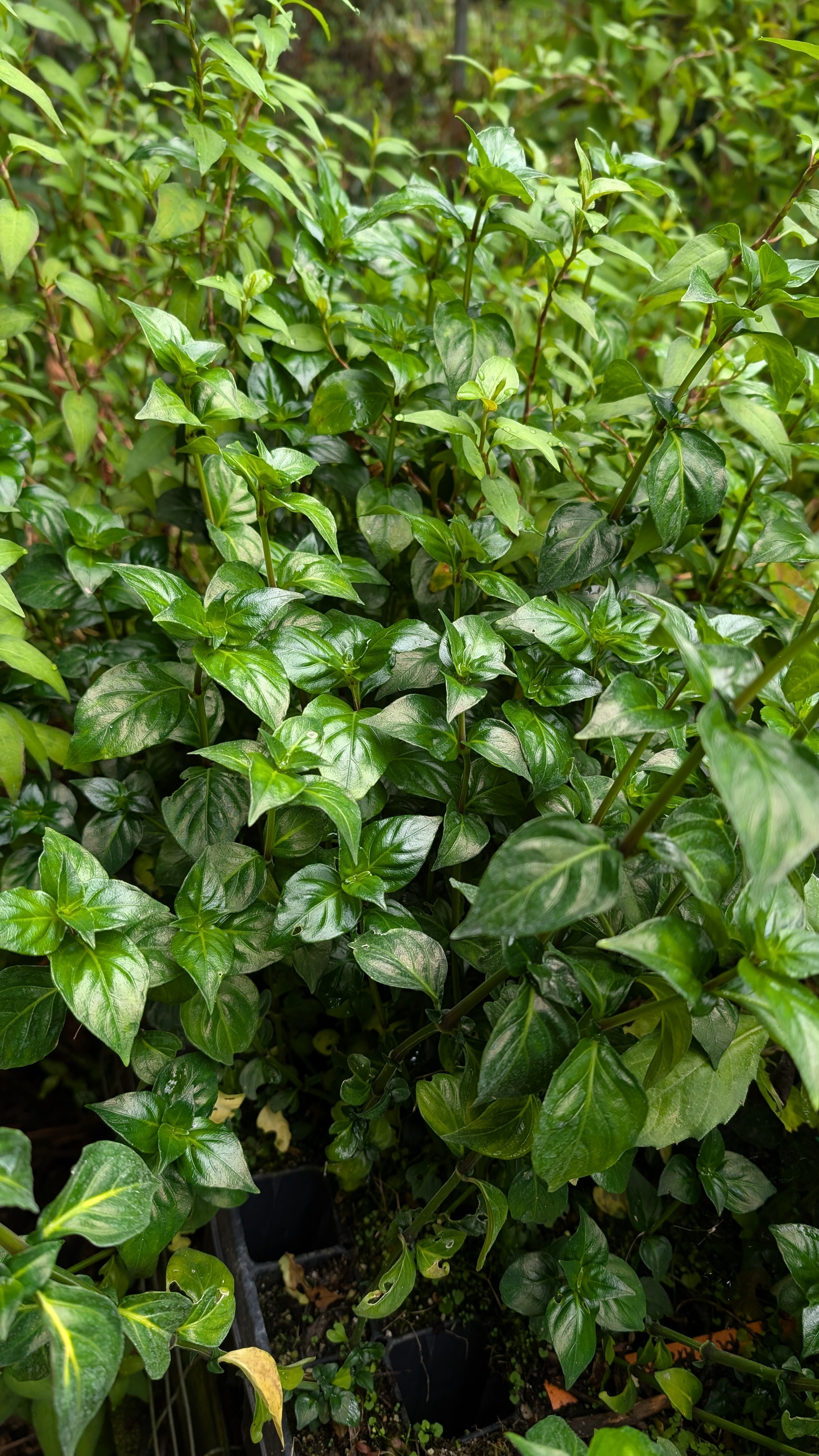Very popular and native to Papua New Guinea, mushroom plant is a fast growing bushy herb that has a pleasant taste like mushrooms, especially when cooked. Very popular incorporated into pasta sauces or soups and stir fries, or used raw on sandwiches or in salads. The plant is very attractive with glossy deep green leaves and bright blue flowers, it grows about 24" tall and spreads to make a dense clump. Very nutritious it is rich in calcium,iron, protein, beta carotene, chlorophyll and vitamins A and C. From the tropics it is sensitive to frost and should be grown in a greenhouse or a container so it cam be brought indoors during the winter. Hardy zones 9-10.