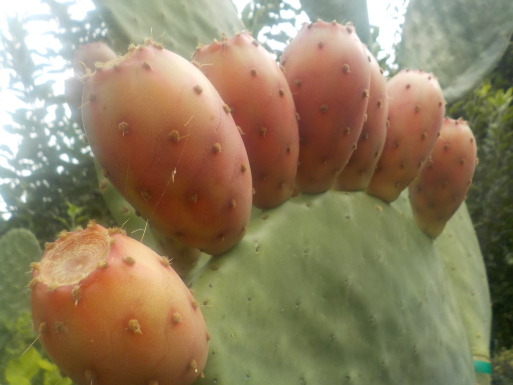 Very heavy producer of sweet red-pink fruits. Showy orange-red flowers and large low thorn pads on a sturdy plant that is said to have excellent cold hardiness. This Opuntia ficus- indica variety was collected by Opuntia breeder Peter Felker from a farmer in Saltillo, Mexico.  We obtaned this selection from the National Arid Land Plant Genetic Resource Unit (NALPGRU) in Parlier, CA. Special thanks to Gabriela Romano who shared much information from evaluations done there to determine the best of the many varieties held their. Hardy zones 8-11.