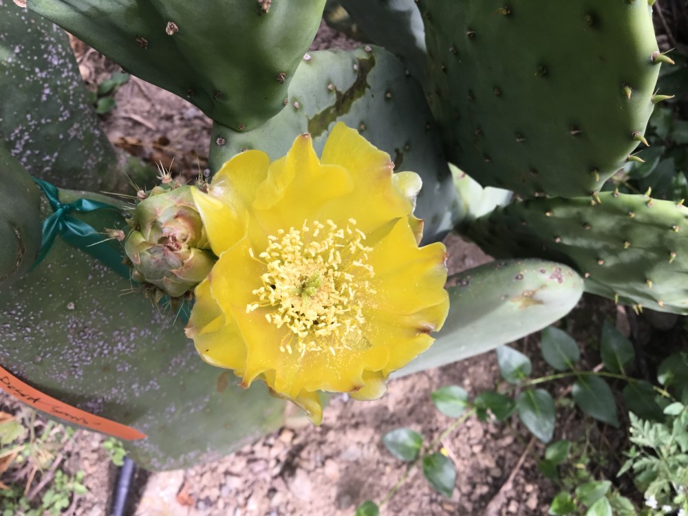 Beautiful yellow-green fruit has a soft pink blush and has very sweet fruity flesh with few seeds. Found growing at the Plantation fo Eugenio Herrera in Til Til, Chile on poor rocky soil with no irrigation. Showy yellow flowers and low thorn pads. We obtaned this selection from the National Arid Land Plant Genetic Resource Unit (NALPGRU) in Parlier, CA. Special thanks to Gabriela Romano who shared much information from evaluations done there to determine the best of the many varieties held their. This Opuntia ficus-indica variety is hardy zones 8-11.