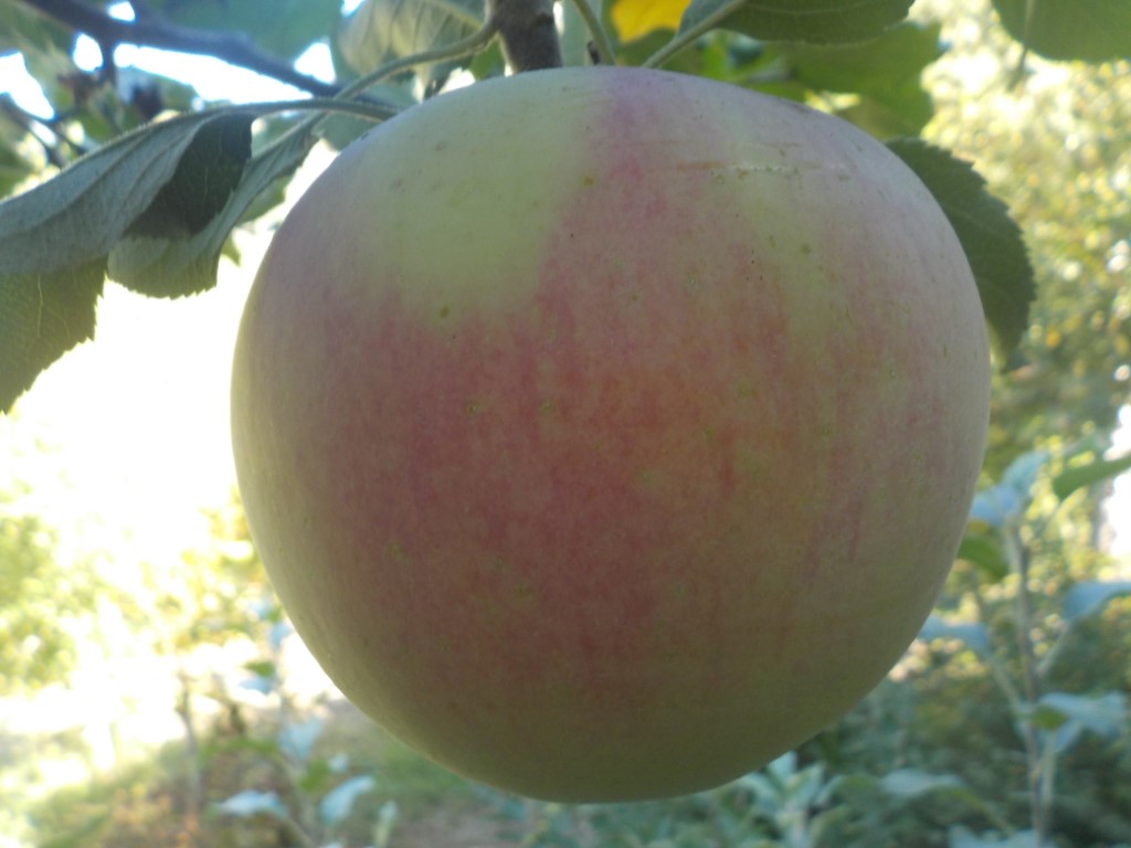 Large yellow green blushed red apples are slightly acidic super juicy and firm. Excellent for dessert and cooking. Large vigorous tree is a dependable annual producer. Originated in Ohio in 1940, it is very popular in Oregon's Willamette valley. Ripens in October and is a good keeper. Hardy zones 5-9.