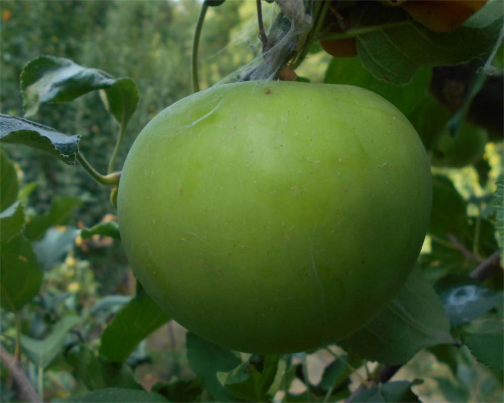 An excellent old heirloom variety that produces very large shiny green sweet and flavorful fruit that is great for pies and cooking, but also makes a fine fresh eating apple. Ripens mid to late September, but keeps well if kept cool. Was widely planted in the old commercial orchards on Orcas Island, WA in the early 1900's.