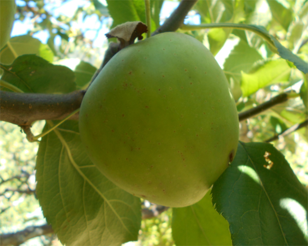 Discovered by Jesse Hiatt in Peru Iowa around 1890 it was originally named Hawkeye. Later discovered by Stark Brothers nursery in 1893 and renamed Stark Delicious. It is now known as the original Red Delicious. It has the classic Red Delicious shape with red stripping over a yellow background. Sweet and delicious it has way superior flavor to most of the modern day Red delicious varieties that have been bred for their solid red coloring. Hardy, productive easy to grow tree.
